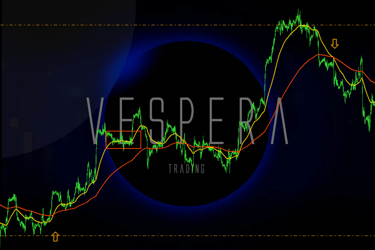 Una forma interesante de operar estos cruces, utilizando el propio cruce como señal de entrada, sería situar nuestro Stoploss justo debajo de los últimos mínimos si es al alza y, por el contrario, situarlo por encima de los últimos máximos si es a la baja. Y cerraríamos la operativa al observar un periodo plano en la EMA corta, tal y como se muestra a continuación en la imagen.
